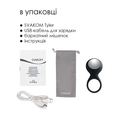 Вибрирующее эрекционное кольцо Svakom Tyler Black — идеальное дополнение к играм в вашей спальне. Это гладкое и стильное кольцо предназначено для того, чтобы усилить ваш сексуальный опыт, создавая мощную вибрацию, которая будет стимулировать как вас, так и вашего партнера.