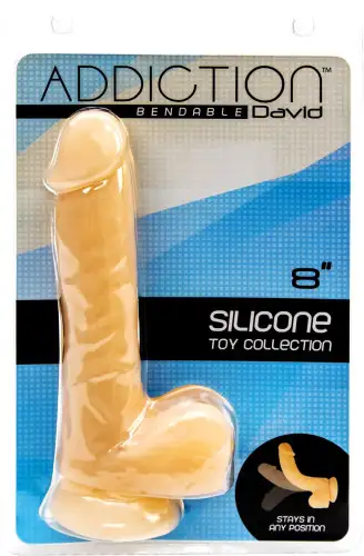 ADDICTION - DAVID - 8-дюймовый гибкий силиконовый донг имеет реалистичную текстуру, которая ощущается как настоящая. Гладкая головка и венозный стержень предназначены для стимуляции самых чувствительных областей, а гибкое тело позволяет вам настроить свой опыт для максимального удовольствия. .