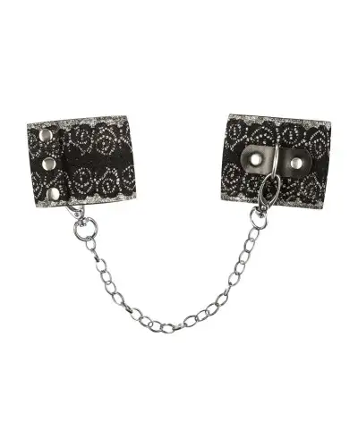 Широкие наручники с блестками и цепью Obsessive A747 cuffs, черно-серебряные