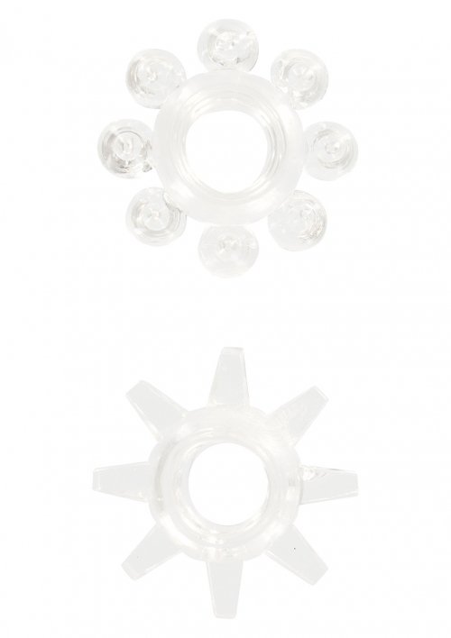 В набор входит 2 кольца, внутренний диаметр которых составляет 1,5 см, внешний диаметр – 2,3 см. Игрушка поставляется в двух цветах – черном и голубом. Изготовлены они из термопластичного эластомера, абсолютно безопасного для здоровья. Выпуклые шарики на одном, и шипы на другом кольце, обеспечат дополнительную стимуляцию влагалища партнерши. Нельзя использовать эрекционные кольца дольше 30 минут.
