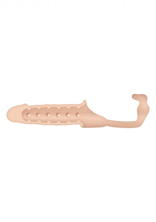 Комфортная насадка с анальным стимулятором Adam S Penis Extension W Anal Leash помогает увеличить размер члена, способствует продлению эякуляции и привносит в секс новые невероятные ощущения. Игрушка имеет удобную форму и реалистичный рельеф, отверстие для мошонки делает ее максимально практичной в использовании. Благодаря упругой и эластичной поверхности стимуляция предоставляет фантастическое наслаждение.
