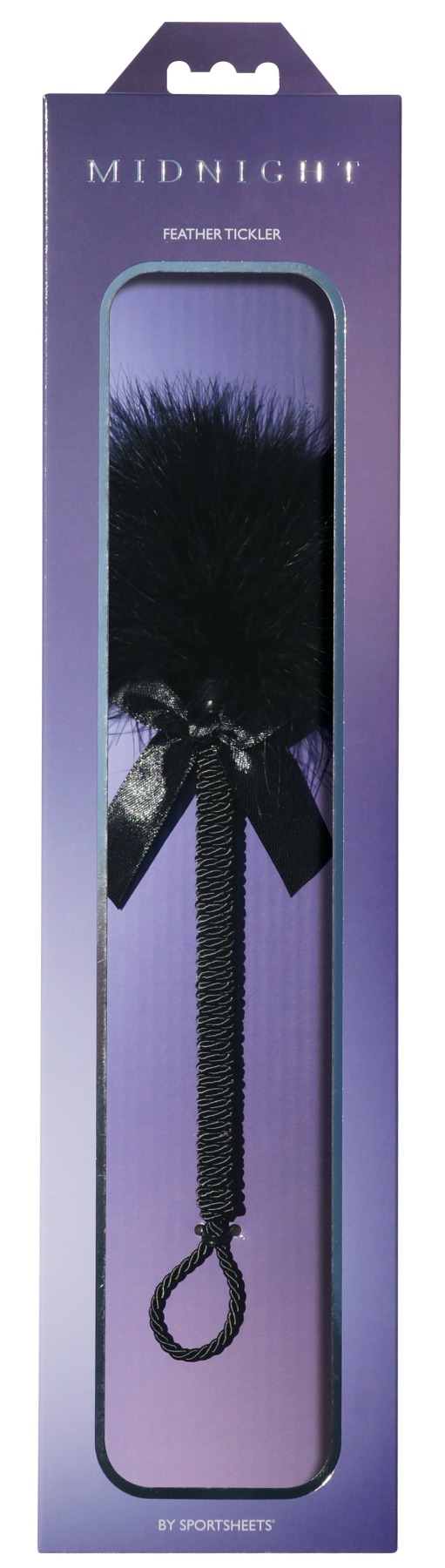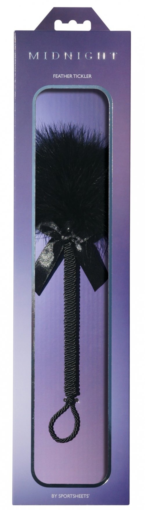 Соблазнительный дизайн метелочки Sportsheets Midnight Feather Tickler тоже не оставит никого равнодушным. Натуральный пушок, кокетливый бантик, стильная ручка и петелька для пальца сделают Вашу прелюдию просто незабываемой!