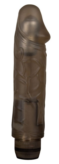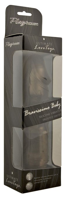 Вибратор BRAVISSIMO BABY FROSTED SMOKE. Небольшого размера, имеет выраженную венозную систему и головку. Плавная регулировка режимов вибрации. Длина – 13,5 см, диаметр – 3,5 см.