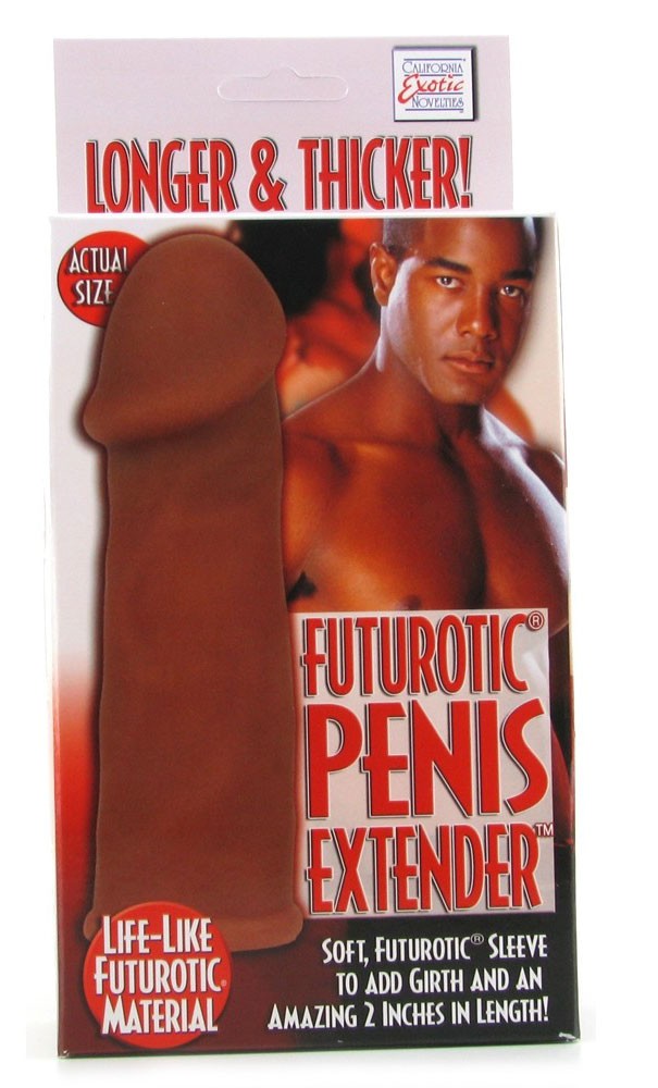 Удлиняющая насадка FUTUROTIC PENIS EXTENDER BROWN. Сделана из киберкожи - на ощупь как настоящая кожа. Сможет "удлинить" ваш член на 5 см! Длина – 14 см, диаметр – 4 см, хорошо растягивается.