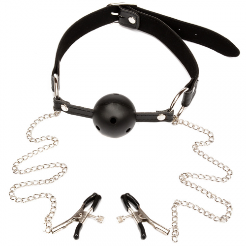 Кляп с зажимами сосков.
