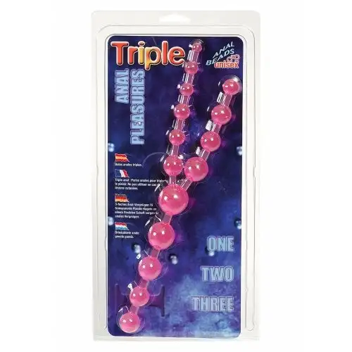 TRIPLE ANAL PLEASURES представляет собой цепочку с тремя концами. Для вагинального проникновения предназначен конец длиной 12 см, а для анального остальные два по 13 и 15 см соответственно. Самый длинный конец используется для сверхчувствительной анальной стимуляции.