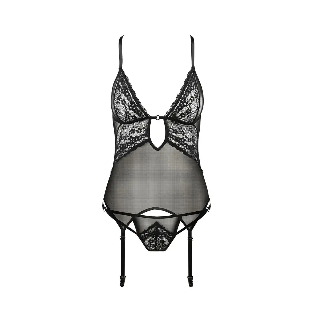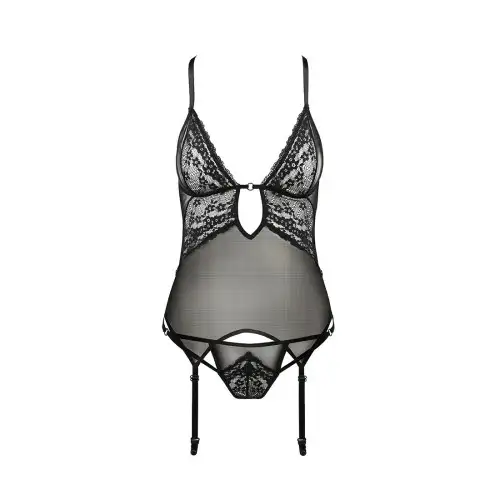 Корсет с декольте ERZA CORSET black L/XL - Passion, пажи, трусики, полупрозрачный